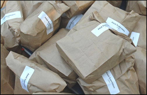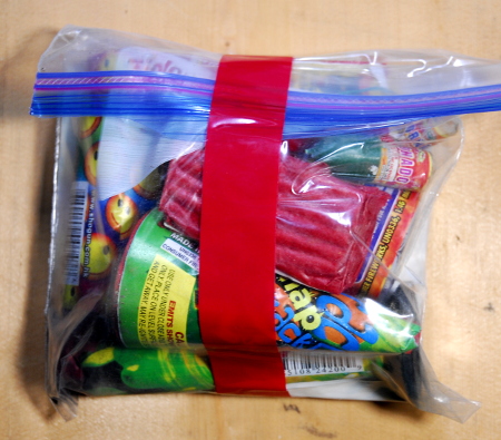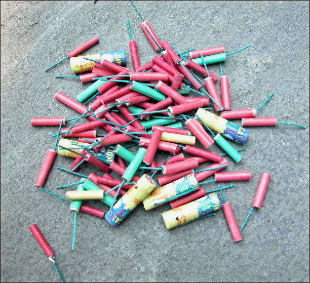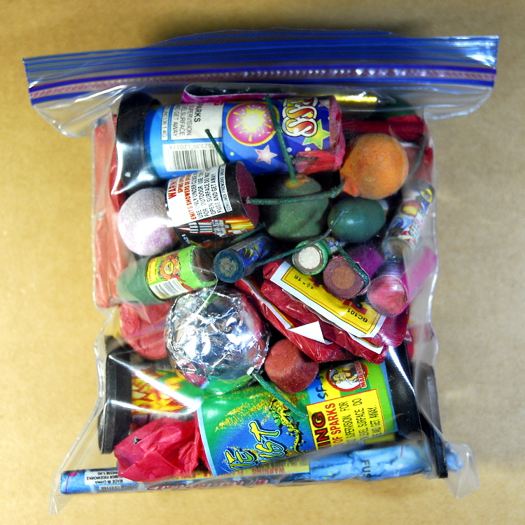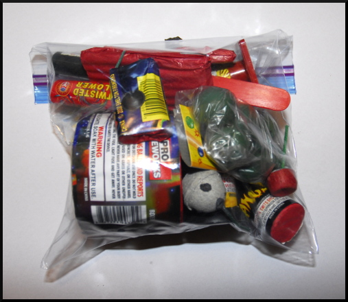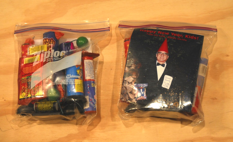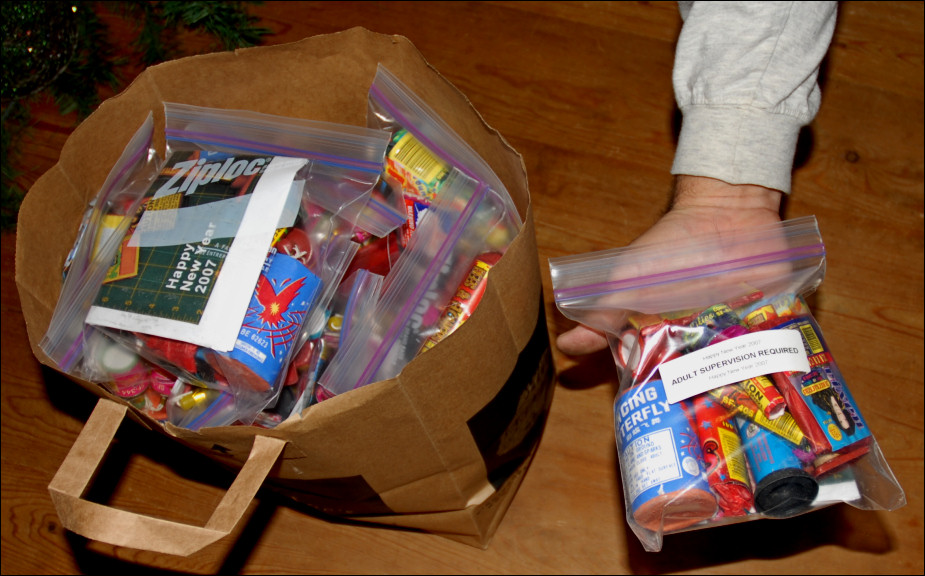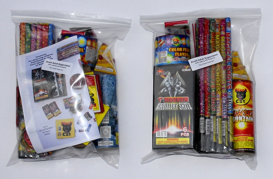 This year we handed out two types of baggies -- one with small fireworks and one with just firecrackers.