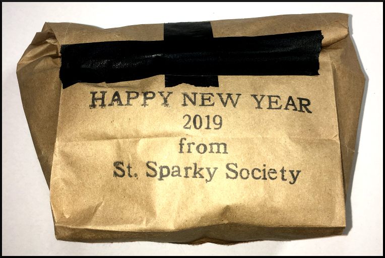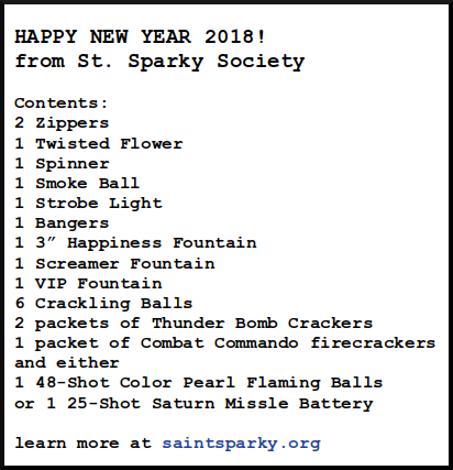 Label on the St. Sparky Society's Fireworks Packet for this New Year.