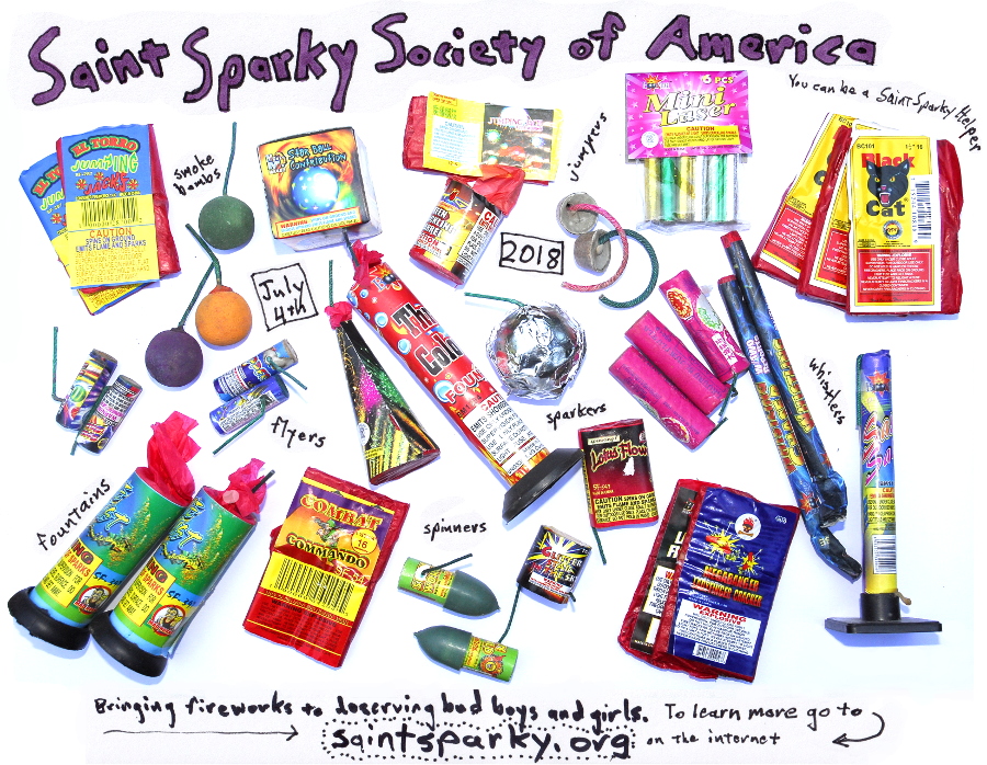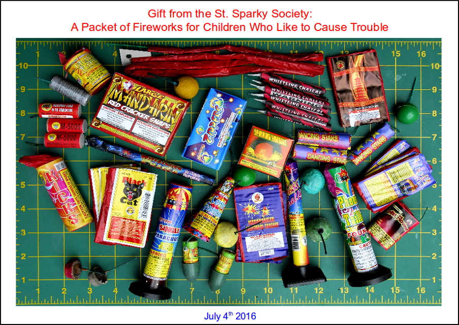 Once again, Saint Sparky Society Helpers bring fireworks to bad girls and boys across America.