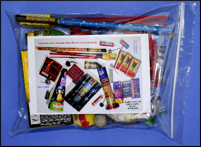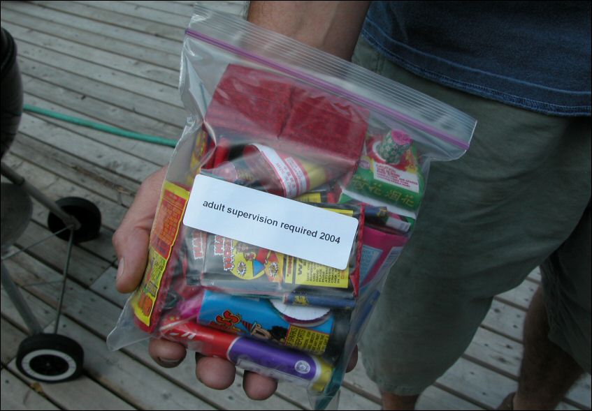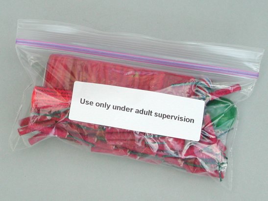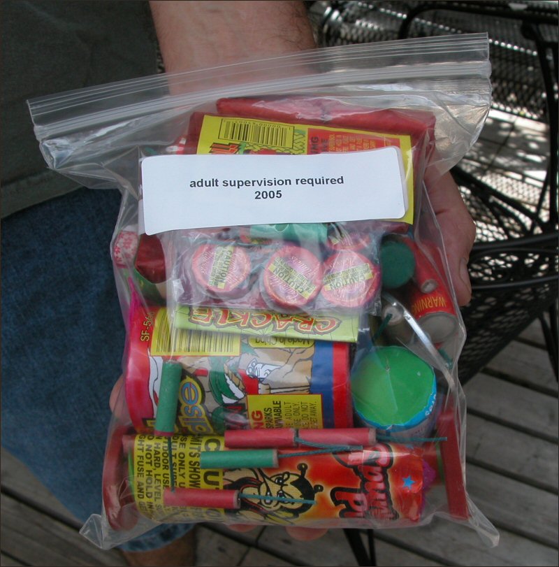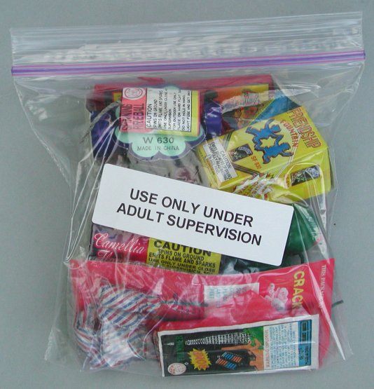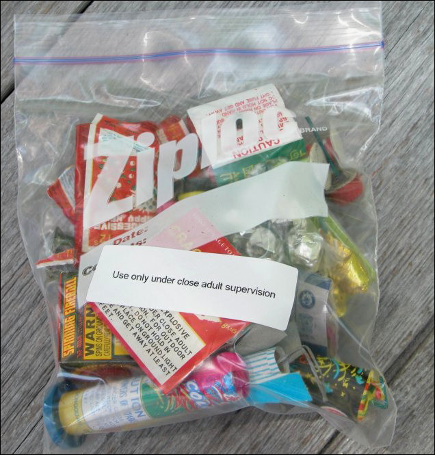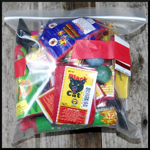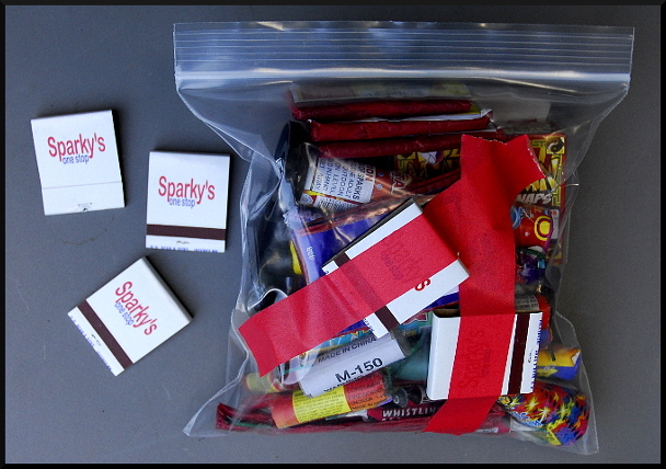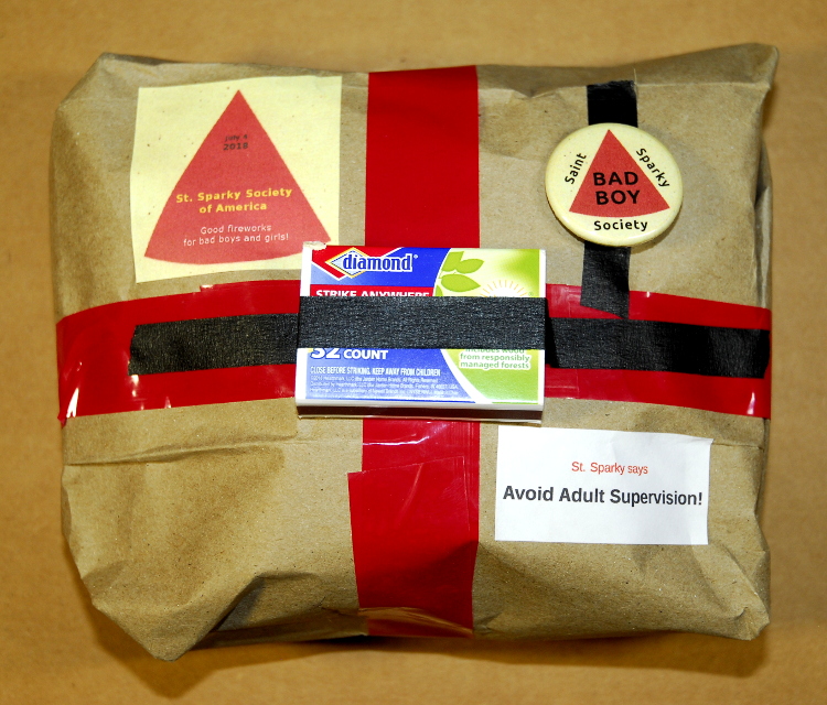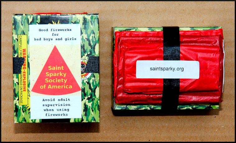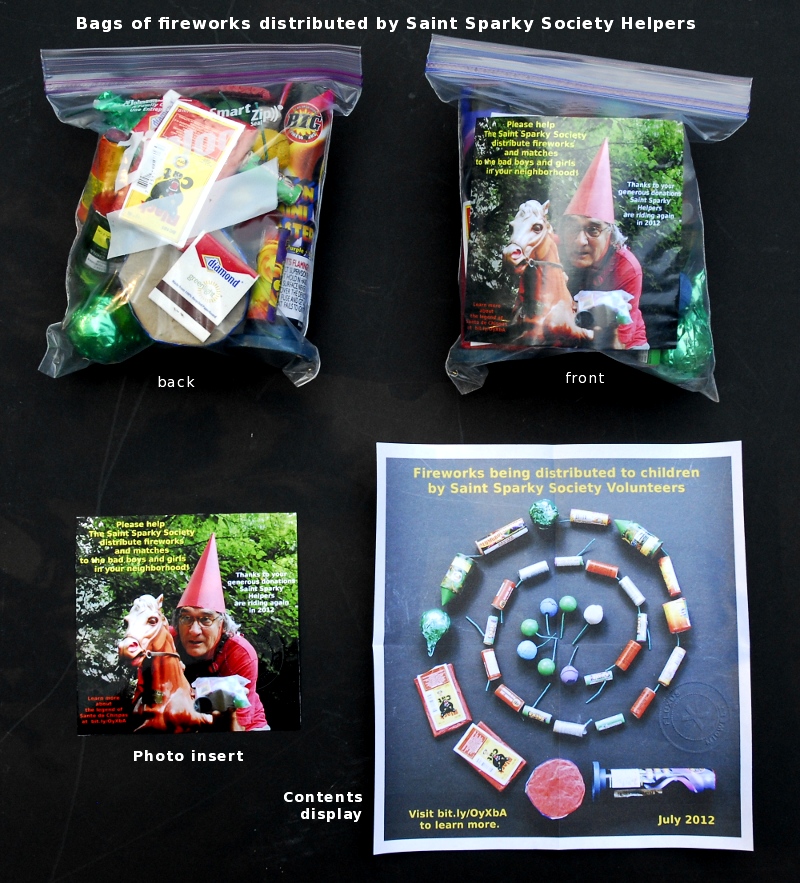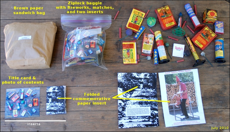 One of the bags of fireworks distributed on July 4th, 2005, by the Elves of Saint Sparky