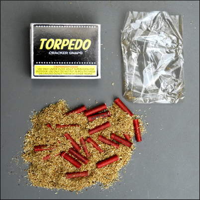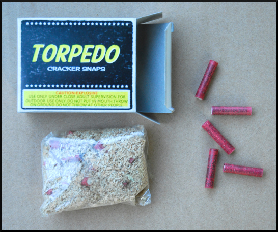 Photo of miniature fireworks and Fluxus Midwest rubber stamps