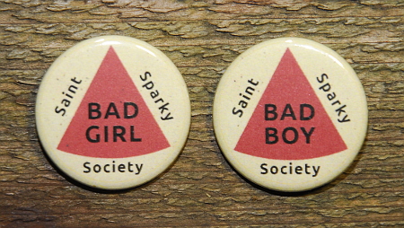 New this year! "Bad Boy" and "Bad Girl" buttons (1.25 inches in diameter).